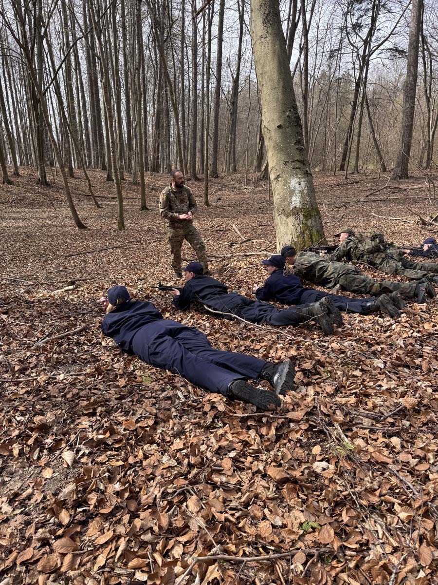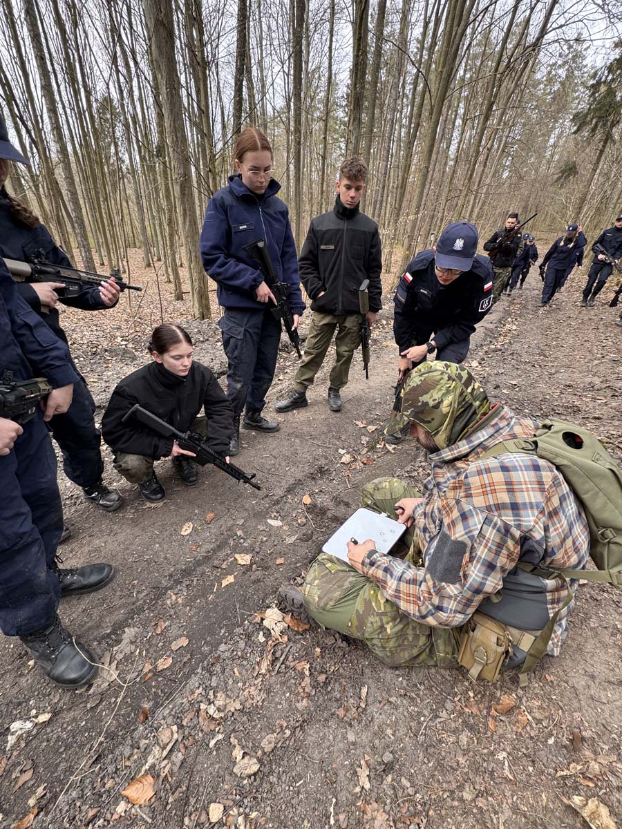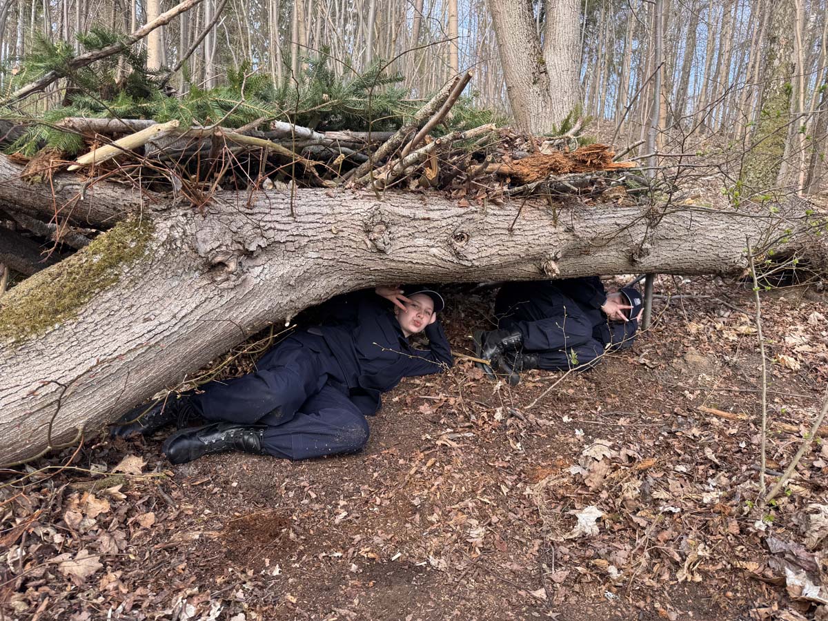 Podczas szkolenia w lesie kadeci rozwijali również umiejętności praktyczne – szczególny nacisk położono na komunikację niewerbalną, współpracę w zespole oraz skuteczne przekazywanie sygnałów bez użycia słów.