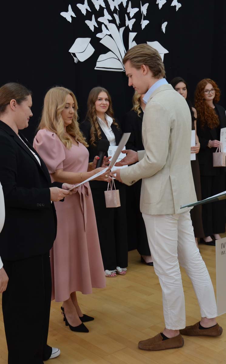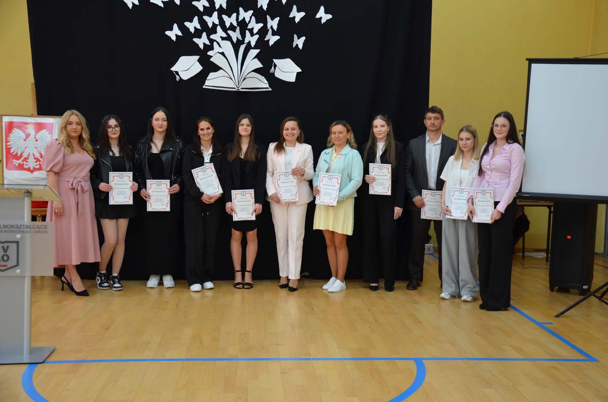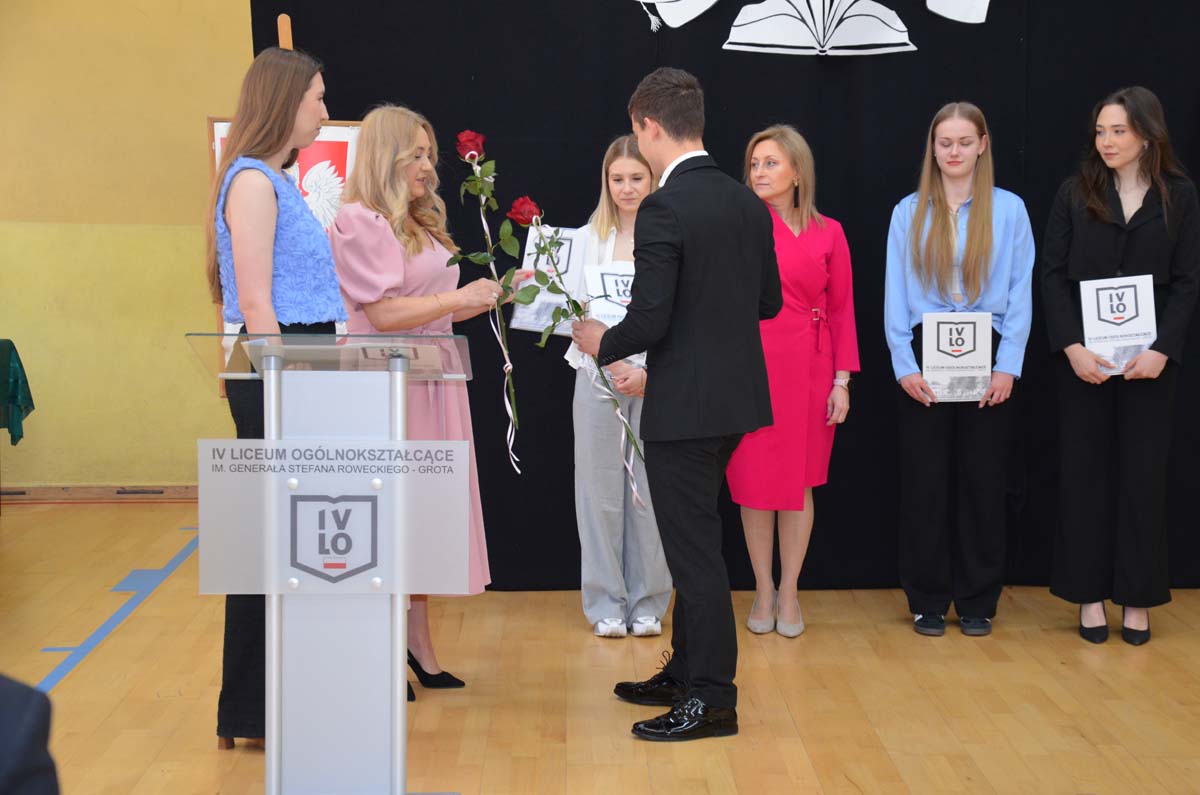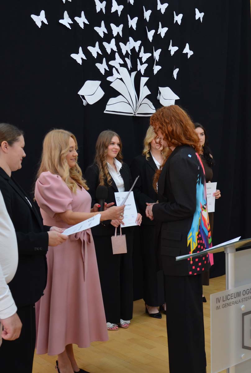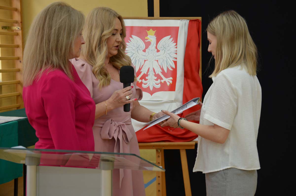 Podczas oficjalnej części uroczystości Dyrektor Szkoły, Pani Aldona Niewieczerzał Szafrańska, wraz z Gronem Pedagogicznym, wręczyła liczne wyróżnienia dla osób, które szczególnie zaznaczyły swoją obecność w społeczności szkolnej:
